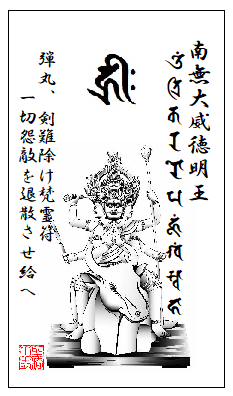 この梵符は、個人的な怨みを除ける梵符で、特に大威徳明王は凶神など神々の障りをも祓いのけると言われています。